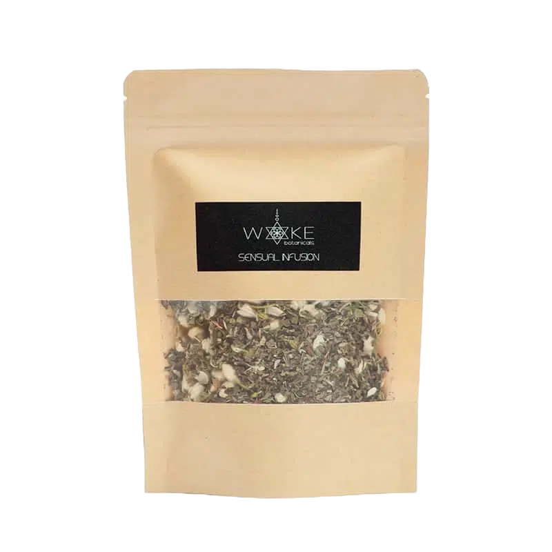 Sensual infusion, damiana, jasmine, mint, and hemp. An ancient formula thought to enhance your sexual pleasure. Helps relax the mind and let the blood flow. Soothing the digestive system, reducing bloating, tempering headaches, may boost metabolism. An aphrodisiac full of antioxidants. Good for oral health…it started with a kiss…